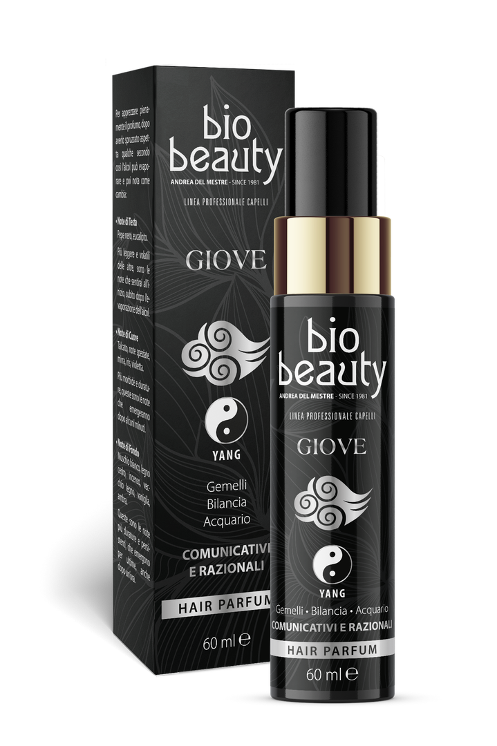 Scopri GIOVE, il profumo per capelli pensato per te, segno d'Aria! Gemelli, Bilancia e Acquario energia Yang! Con una fragranza fresca di eucalipto, pepe nero, mirra, iris, vaniglia e ambra