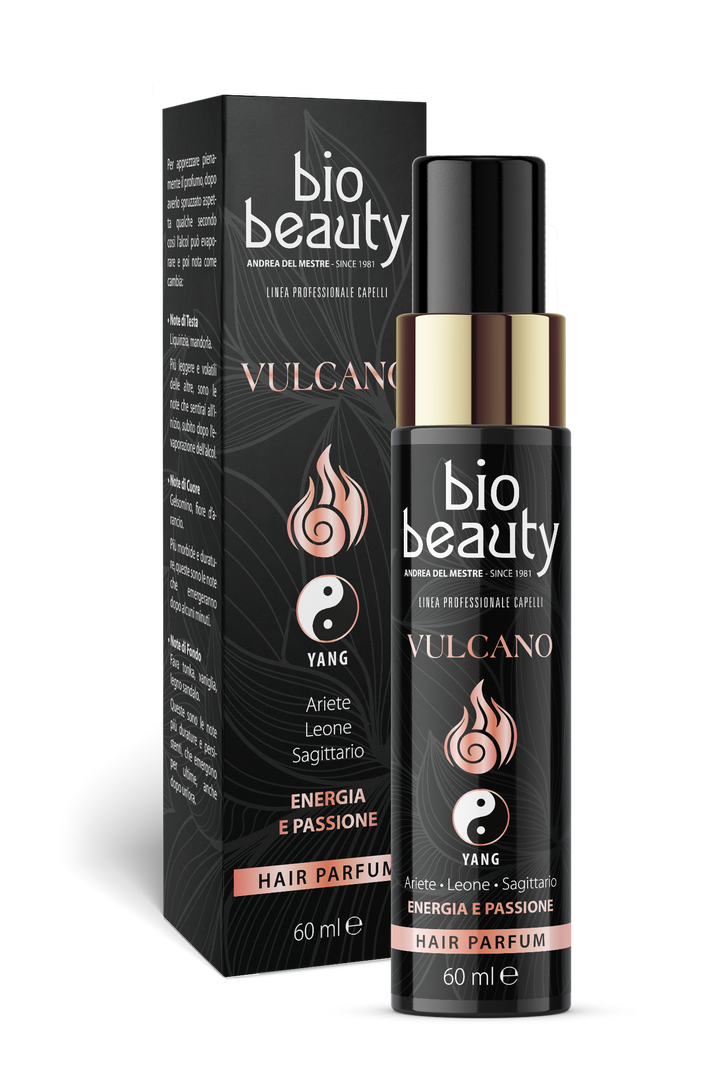 Scopri il profumo VULCANO (Fuoco) un'esplosione di energia per i tuoi capelli! Con note di liquirizia, mandorla, gelsomino e fiori d'arancio, questo profumo è perfetto per i segni di fuoco Yang come Ariete, Leone e Sagittario